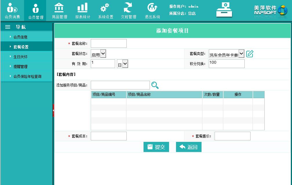| 2.7、添加套餐项目 | |||