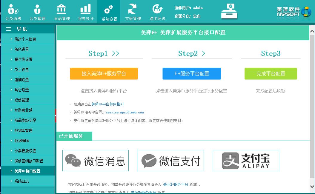 | 2.31、美萍E+服务平台设置 |