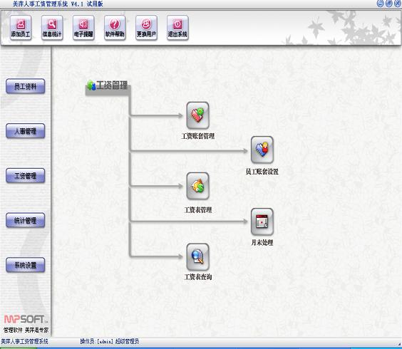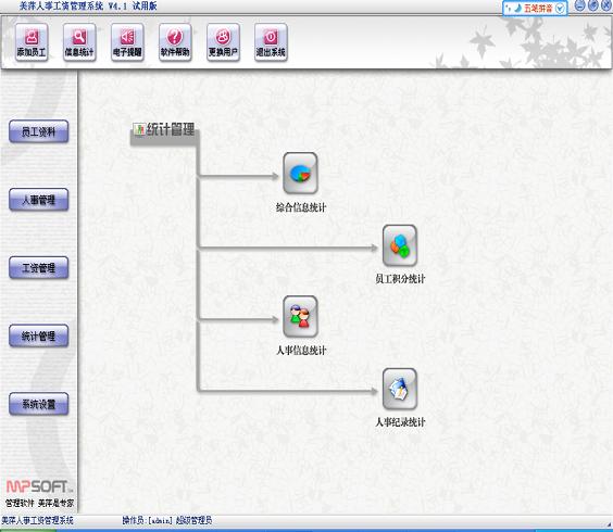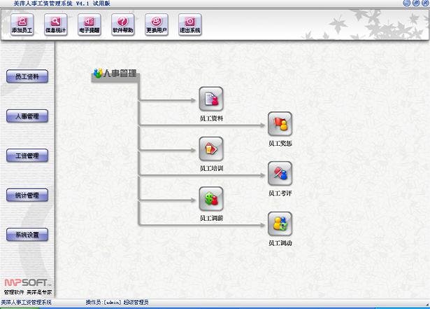 软件,美萍人事管理软件界面设计简洁,美观,其人性化的软件流程,使