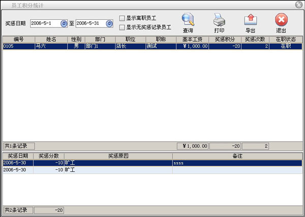 | 奖惩信息:奖惩信息的分数多于0为奖励,小于0为惩罚,用户可自定义 |