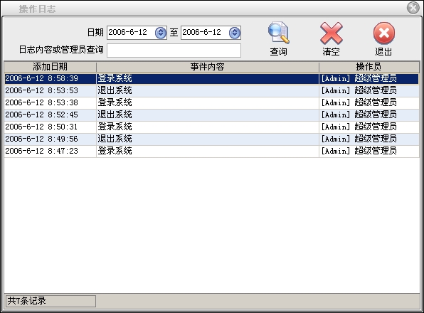 系统设置:可以对数据库备份/恢复/初始化,管理操作员,基础资料设置,系统设置,查看用户操作日志等 |