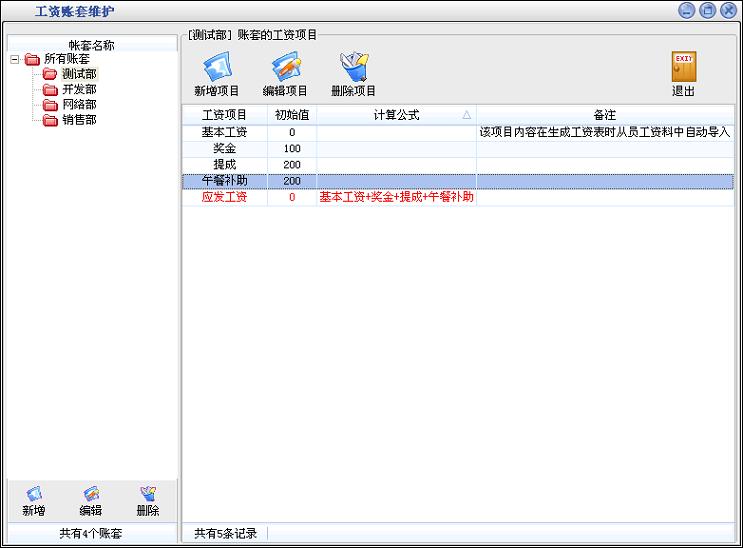 可在该模块对工资账套及工资计算公式进行管理,如图: