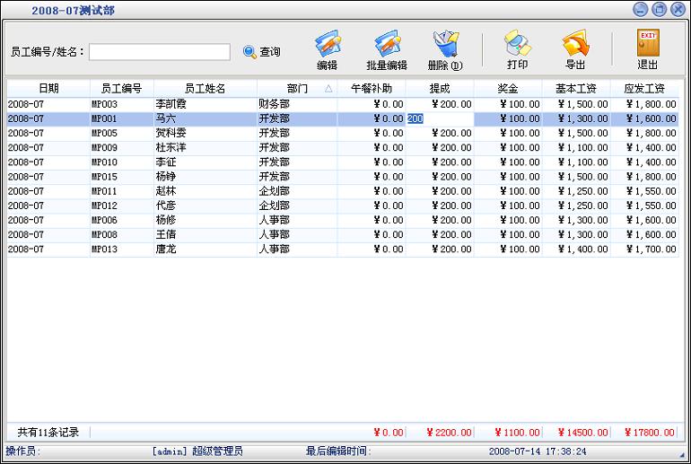 工资管理:工资项目及计算公式自由设定,计算公式支持多种函数。支持报表表格格式调整功能。强大的工资统计分析、报表打印,各种数据可以转换为EXCEL等数据格式