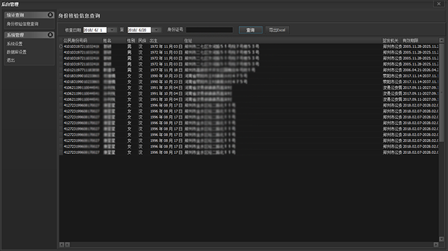 6. 实现导出采集照片,导出照片名按身份证照片和现场采集照片命名;身份证资料也可以导出为EXCEL,可备份查看。