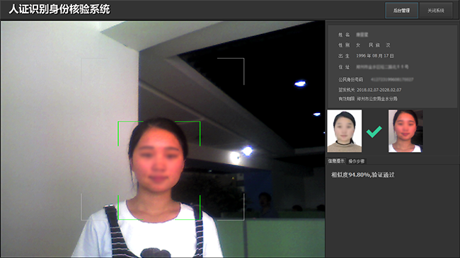4. 识别率达到99%以上,真正实现人证统一,杜绝盗用、冒用现象。