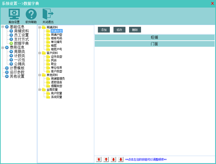 | 4、数据字典: 字典显示顺序支持自定义,在字典信息下放的红色调整按钮调整顺序后就会自动保存显示顺序。 |