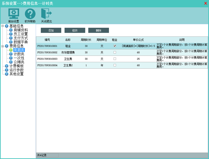 | 5、费用信息:定义出租房屋是需要用到的的费用信息。分为4类: 周期类:按照固定的周期分次收取的费用(比如房租、物业费等) 计数类:按照使用量的多少收取不同的费用(比如水费、电费等) 一次性:单次收费,不重复收费的项目(比如佣金、中介费等) 公摊类:按照一定的比例有承租人共同分摊的费用(比如中央空调使 用费等) |