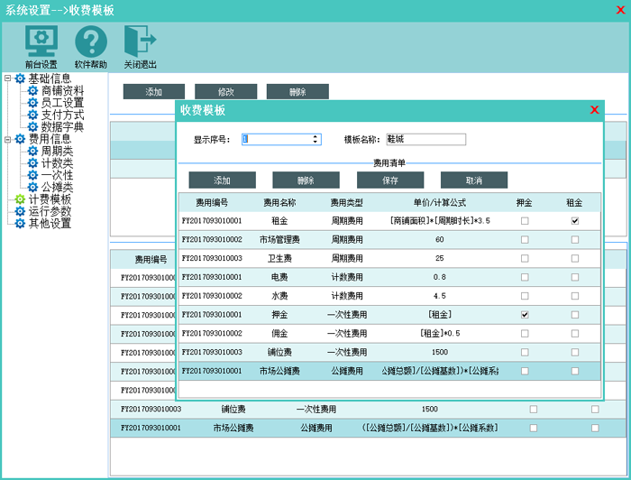 | 6、计费模板:定义一组收费项目,用于快速录入费用。计费模板可以用于小区设置 中设置默认的收费项目,也用于出租签约时快速切换收费项目。 |