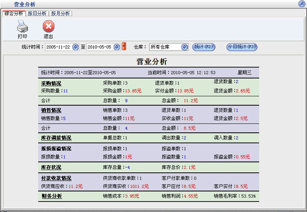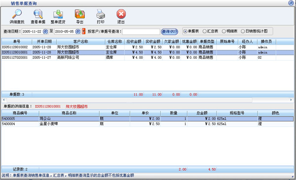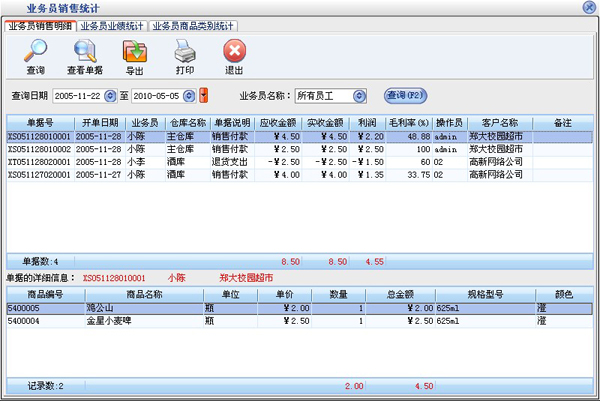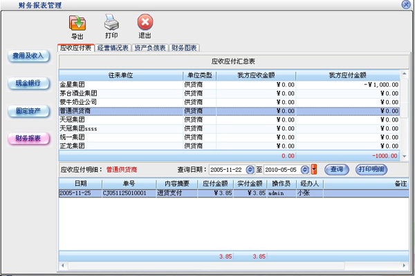 统计报表:完整的统计查询功能,每张单据每次收款付款都可以清楚的反映。