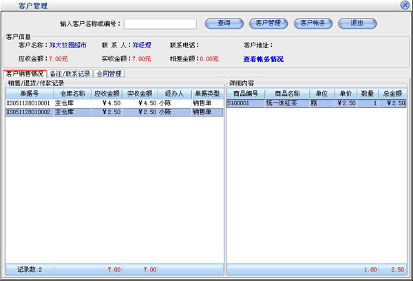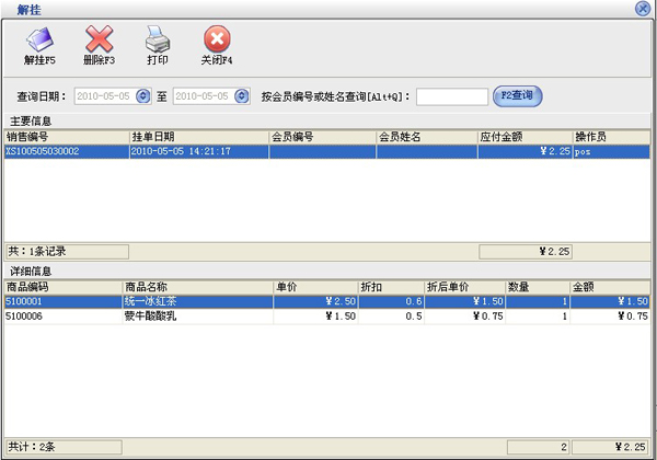 业务管理:进行商品业务,顾客退货,销/退单据和当前库存查询,POS 业务统计,与客户的往来帐务。