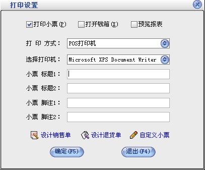 打印设置:设置打印方式、打印机和打印格式。