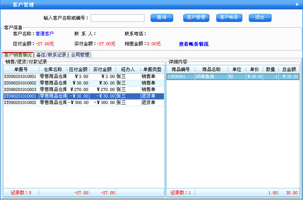 业务退货:进行已业务商品的顾客退货工作,同样可以通过商品条码和编号来选择商品。