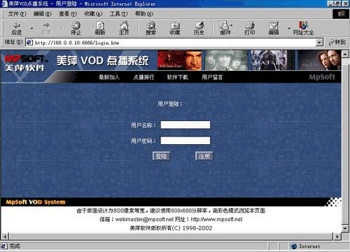 安装完成启动美萍VOD系统即可,客户机器无需做任何设置,直接在浏览器上打入服务器的
