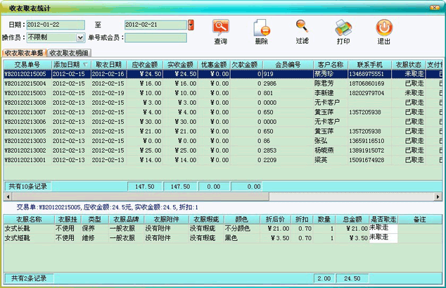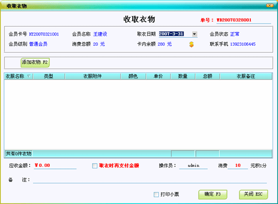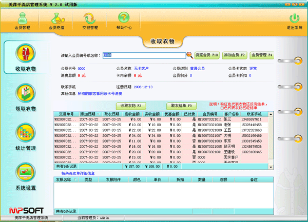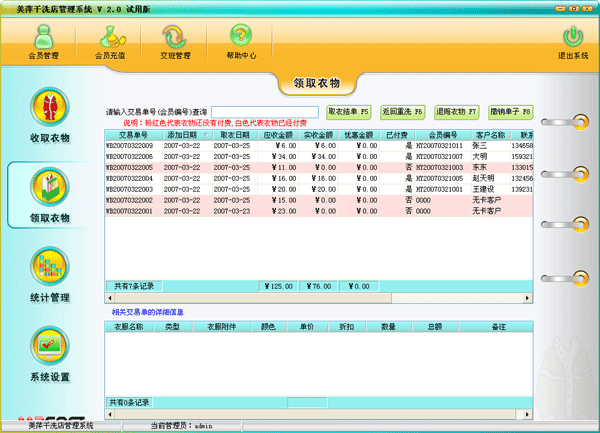 | 2.1 系统设置:包括基础资料设置、衣物价格设置、会员管理、操作员管理、初始化数据库、备份还原数据库、系统设置、系统日志。 |