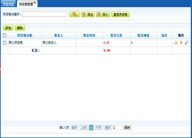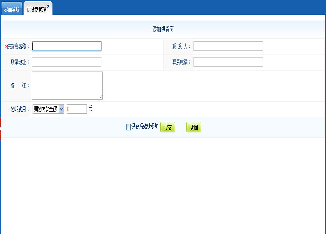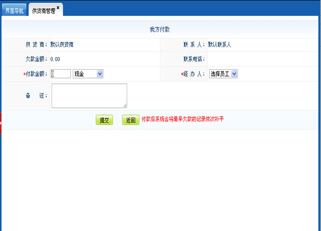 此处管理你商品供货商添加删除、付款功能;