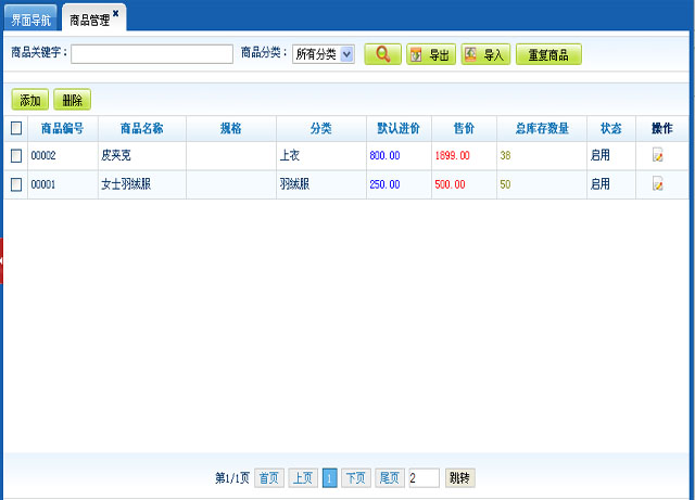 管理商品信息:查询,添加/导入,修改,删除等基本操作;