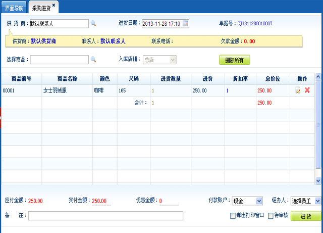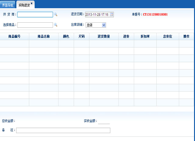 此模块是与你的供货商进行采购进货和采购退货来管理你在商品管理中添加的商品各店铺对应的商品库存信息;