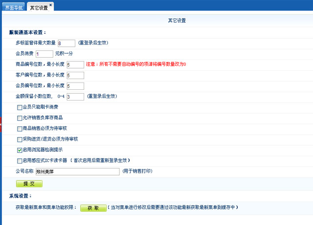 系统设置功能模块,用于系统的日常维护,包括对操作员添加,角色权限管理,分店管理,添加员工,短信管理,其他设置及备份数据库和数据清除管理功能;
