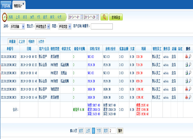 1.业务统计:包含通过店铺通进行的所有的业务数据。可以按单据、汇总、明细,分类(分类统计中有图形汇总统计)进行统计。