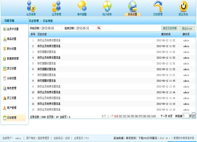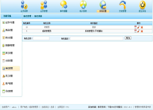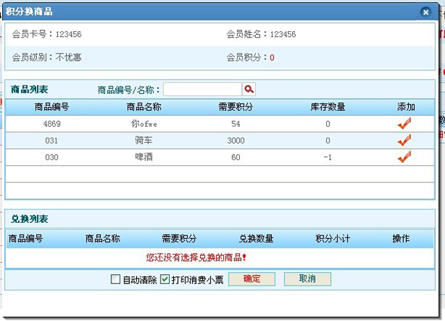 | 添加,修改,删除商品,此部分的商品,将会在会员消费时显示出来,供选择; |