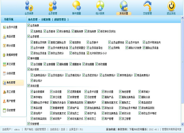 当然,您也可以根据自己的具体情况为各个角色分配具体的权限,您完全可以自己支配; |