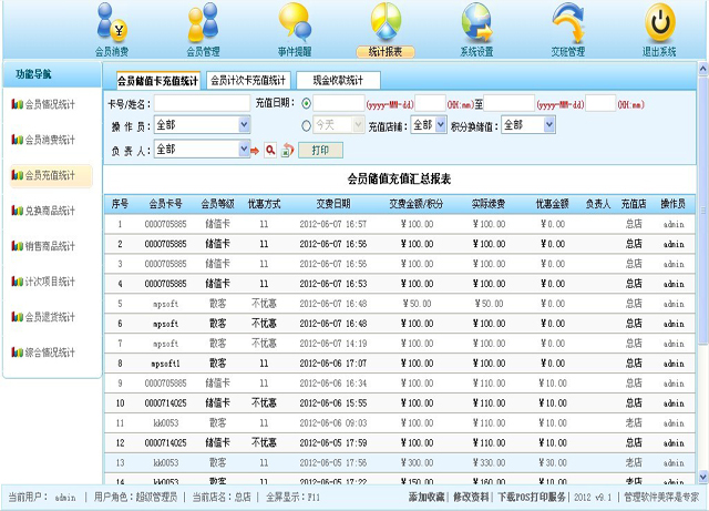 | 3、会员充值统计 |