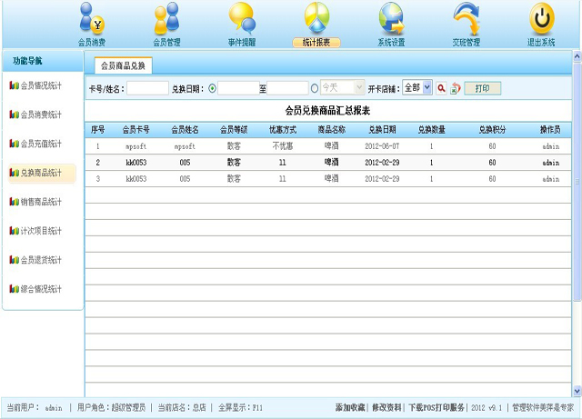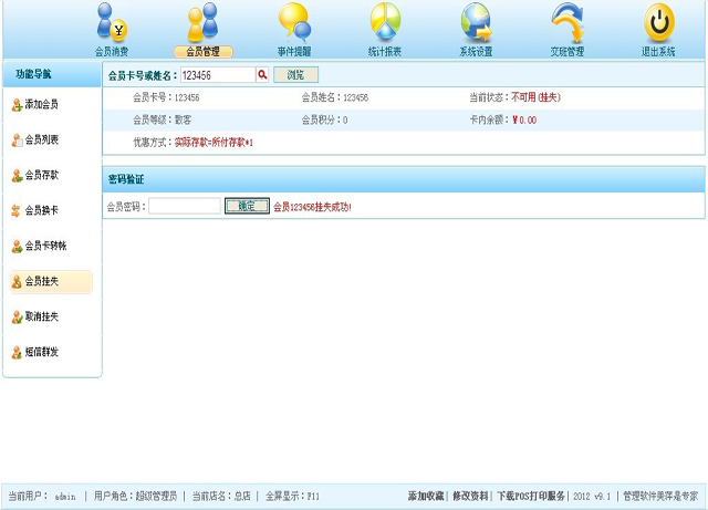 | 6、会员卡挂失 |