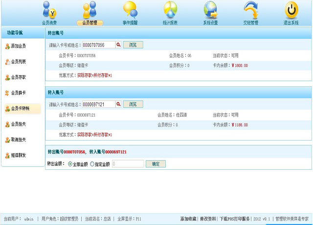 | 5、会员卡转账 |