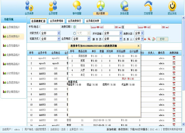 (图4.2 会员消费情况统计报表) |