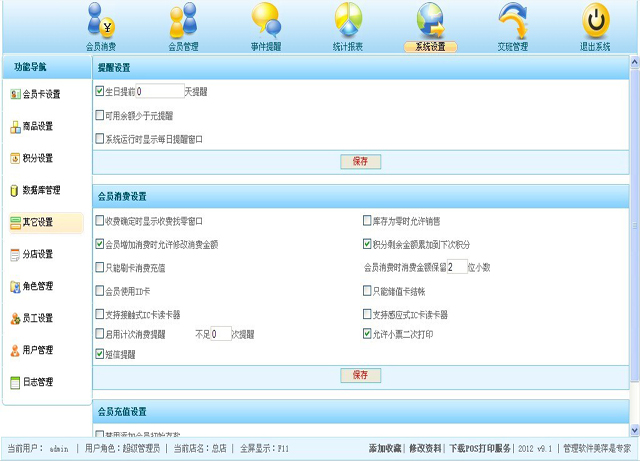 | 包括提醒设置和会员消费设置,界面上的说明都比较清晰,在此不再赘述,操作界面如图5.5所示; |