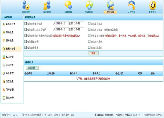 | 本模块可以对您的数据库进行备份,或者恢复,系统记录了备份历史,建议您定时对数据库进行备份,以备您万一数据库损坏的话,来进行数据的恢复,您也可以删除某个备份记录。 |