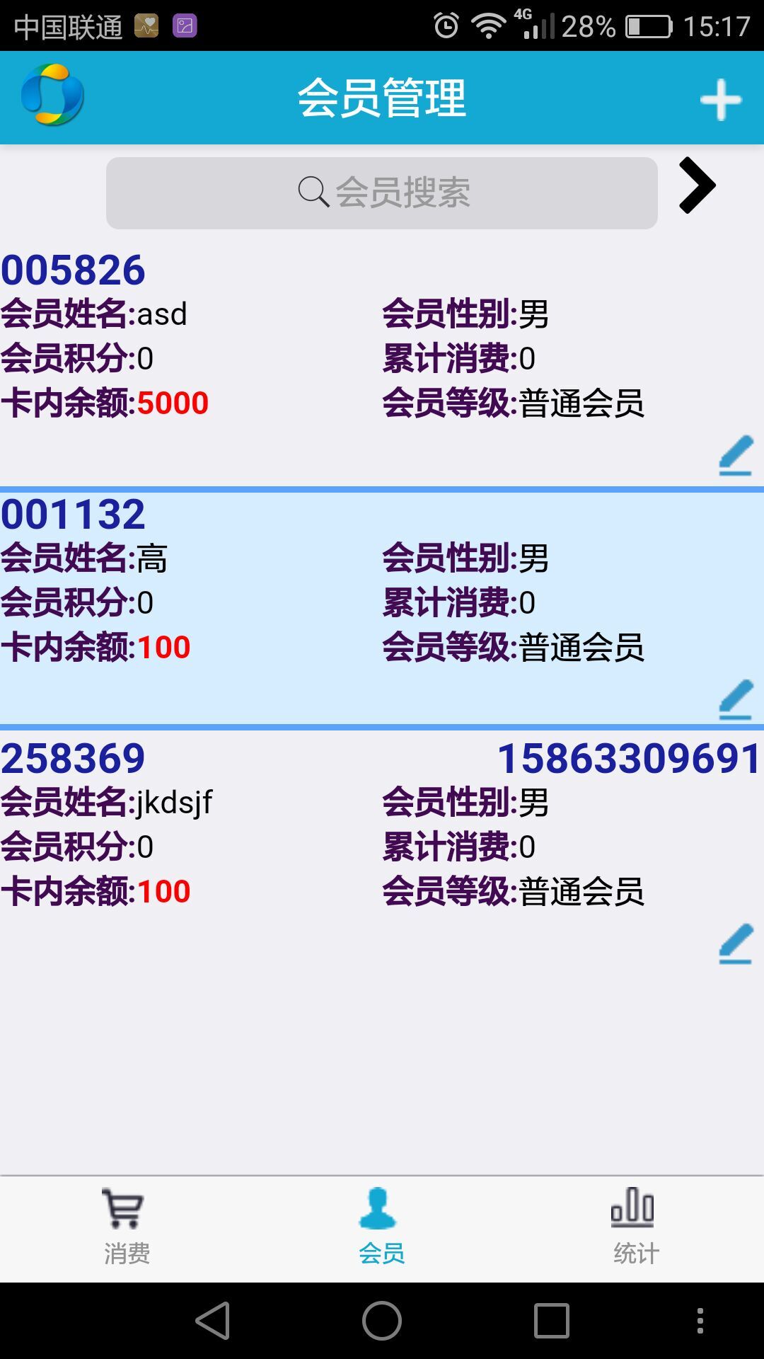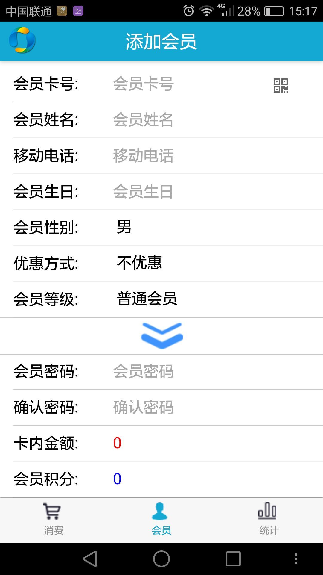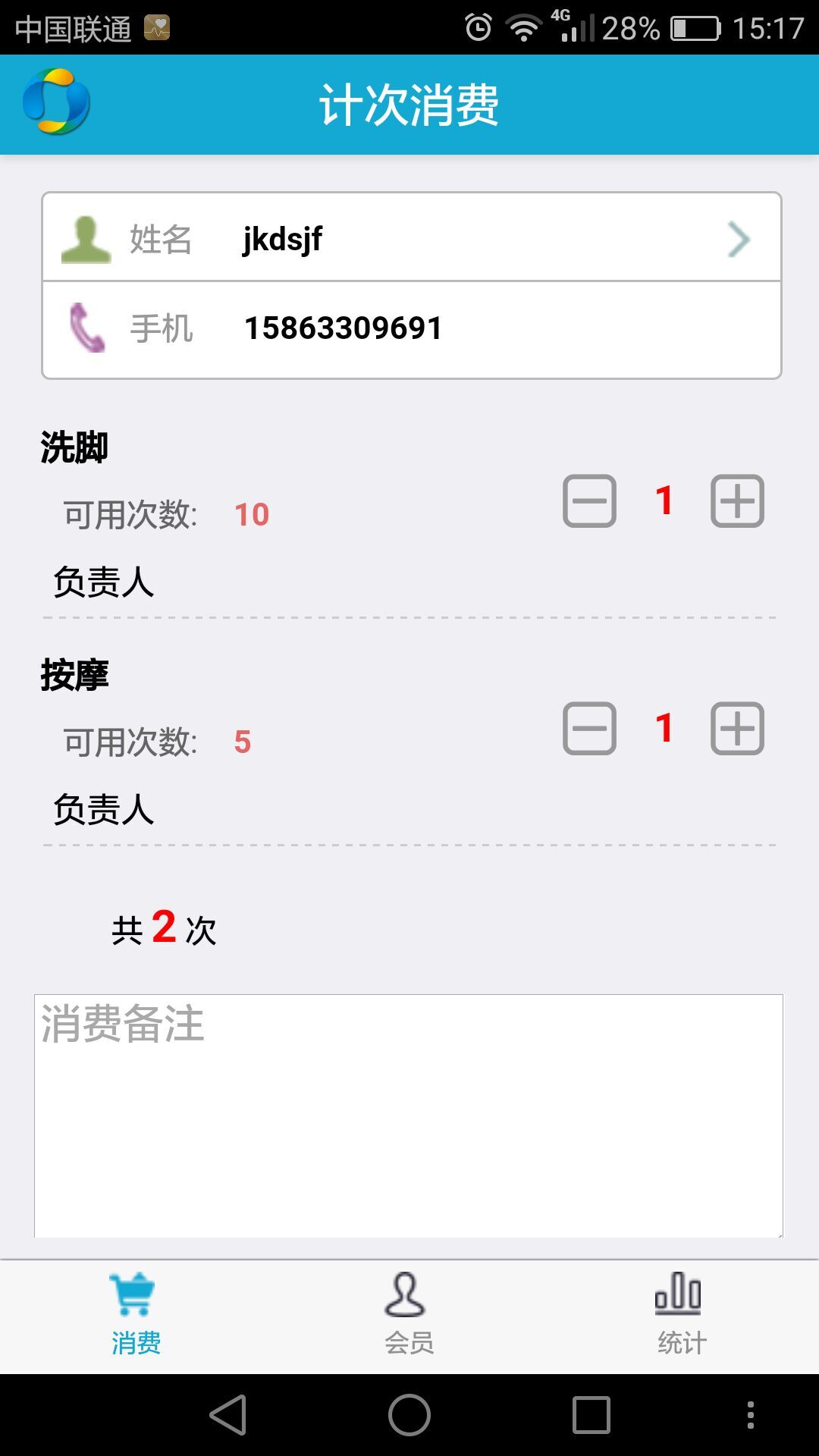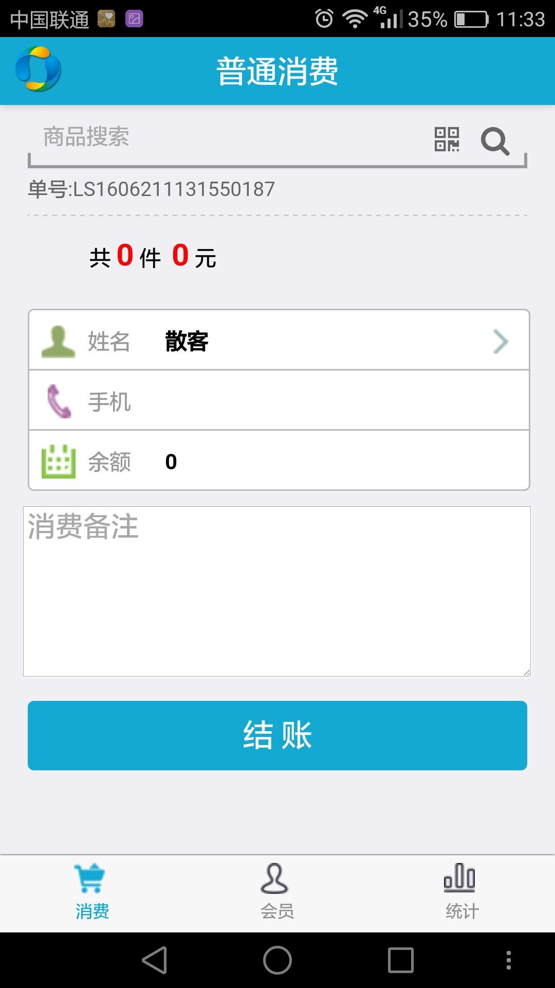 操作员可以使用手机进行添加消费、计次消费,同时在安装使用手机App可以调用手机摄像头来扫描条码/二维码添加商品或者扫描会员