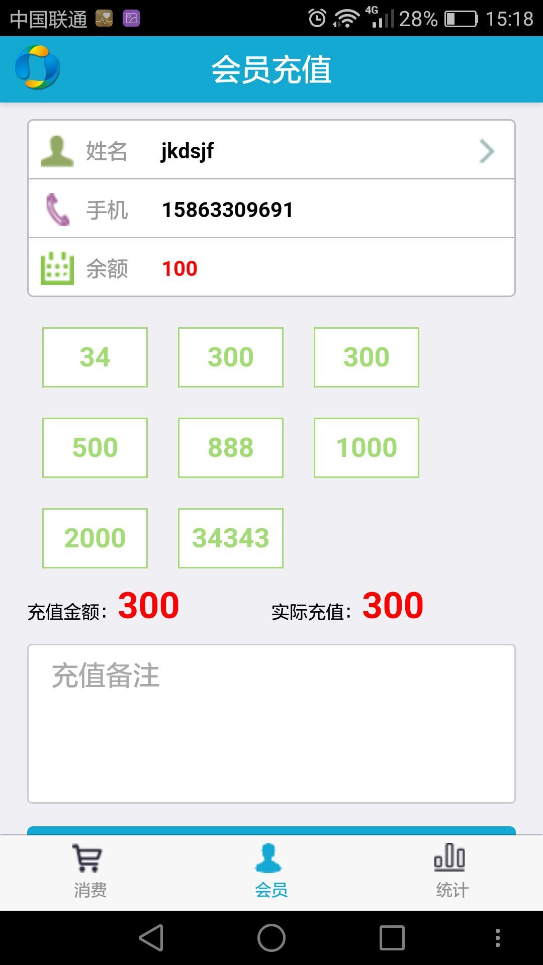 对会员信息进行充值操作