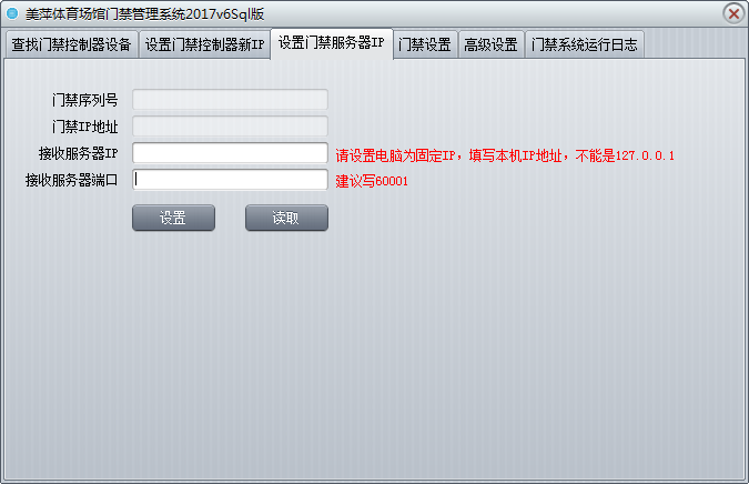 | 第三步:设置门禁的服务器IP,简单来说,就是设置成本机的IP和一个端口号 | |