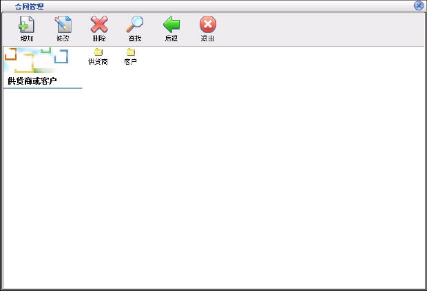 在基本设置模块中点击“供货商信息”按钮打开供货商信息窗口如图5。在窗口中可以看到所有的供货商。点击“增加”按钮打开增加供货商窗口,输入供货商的信息,供货商名称不能重复。如果该供货商有期初金额就在“期初应收”后输入相应的金额。如果选择中“默认供货商”在采购进货和采购退货打开窗口的时候显示的为该供货商,默认供货商只能有一个。点击“修改”按钮可以修改选中的供货商信息。如果该供货有业务发生,则不能再修改期初实付金额。点击“删除”按钮可以删除选中的供货商,如果该供货商有业务发生则不能删除。系统有一个“普通供货商”是不能被删除的。点击“查找”按钮打开供货商查询窗口,输入相应的条件查询不同的供货商信息。点击“全部”按钮可以列出所有的供货商信息。