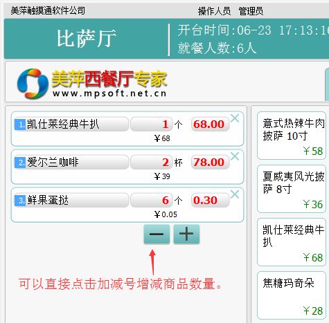 | 2.外卖点餐消费:菜品选择和堂吃一致,不同的是结账需要点击外卖暂结按钮。 |