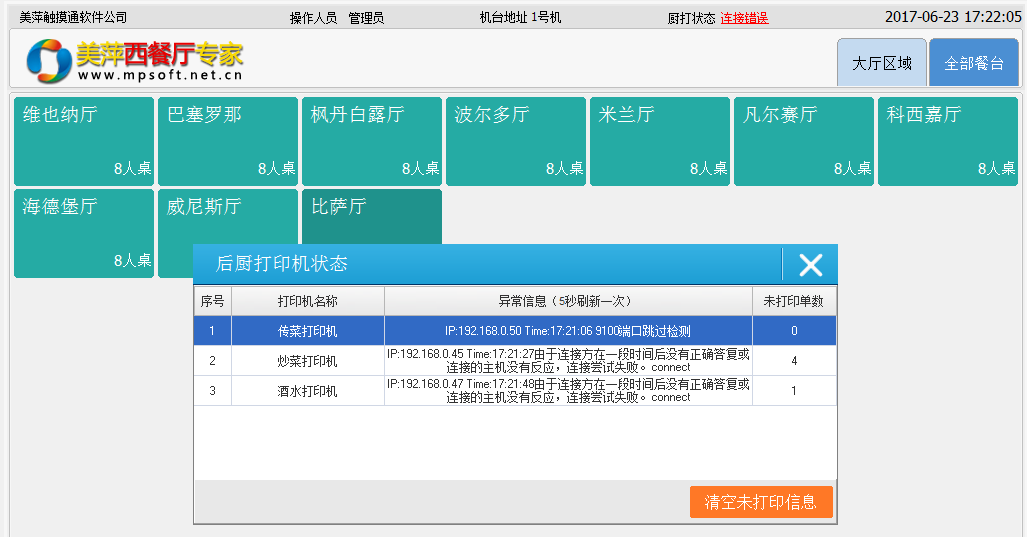 | 3.后厨打印状态:前台可以随时掌控厨房打印机的运行状况。 |