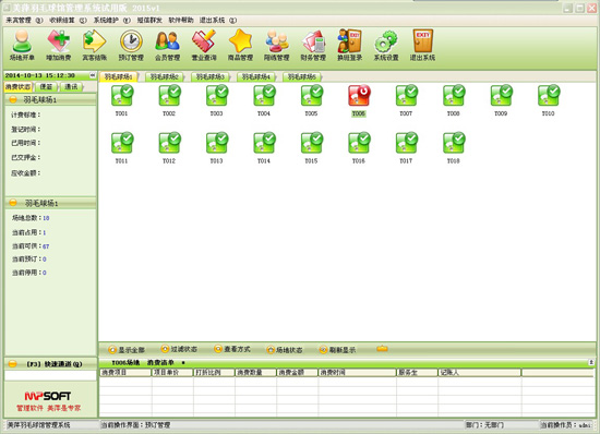 美萍羽毛球场管理软件是一款专业的羽毛球场地管理系统,它集前台收银收费 管理,一卡通功能,场地自动计费管理,场地预订,会员管理,陪练管理等强大功能为一身,系统界面简洁优美,操作直观简单,无需专门培训即可操作使用。是羽毛球馆场馆管理信息化理想的管理软件。