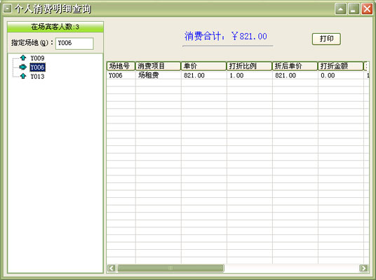 来宾登记→场地开单:每个客户发生消费前必须进行登记(建立客户帐),给客户安排一个场地,场地项目必须是在“系统设置”模块中的“场地设置”中已经设置,系统只能对已设置的场地进行登记。