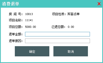 功能说明:该功能主要是用来录入向在住宾客的退款信息。也可以用于在出现录入错误的情况下需要重新录入收款时,用该操作退掉本次收款信息,重新录入。通过该操作录的退款信息会在在住宾客的费用清单中记入一条“宾客退款”费项信息。宾客退款操作影响的是已收总额(不影响押金金额,如果需要调整押金金额需要使用收退押金操作录入负数来实现)。 |