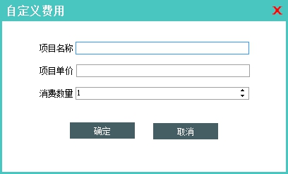 自定义:用于临时性增加费用,录入项目名称、单价和数量后即可。界面如下: