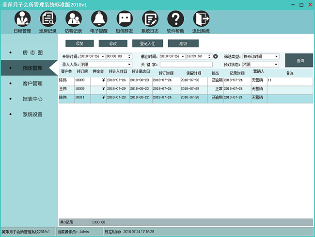 功能说明:针对已经录入的预定信息做相关修改,操作方法与添加预定一致。 |