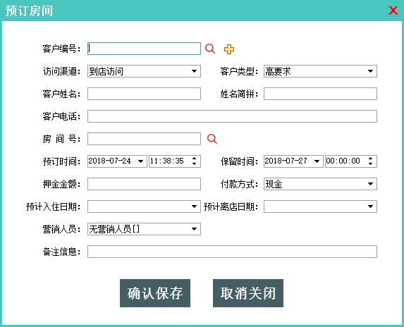 然后填入备注信息后保存即可完成预定信息的录入。