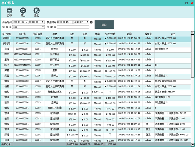 客户账务查询:可以统一查询所有客户的账务信息