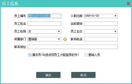 员工信息中的“操作员”、“营销人员”这两个选项,需要根据实际情况勾选。 |