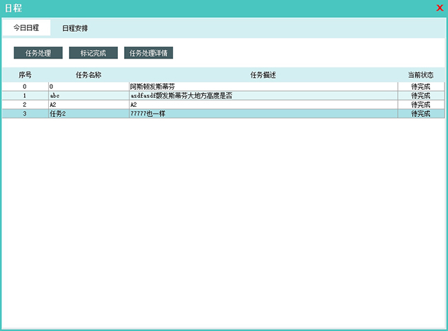 任务处理详情:查询当日日程处理情况。 |