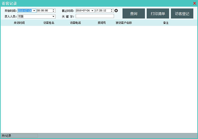 主要用来管理、记录和查询每天的访客信息。界面默认显示当天的访客情况。点击“访客登记”按钮可以添加访客记录。