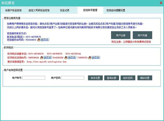 发送短信需要注册账户并且购买短信之后方可正常使用。详情请登录www.mpsoft.net.cn联系公司销售咨询。 |