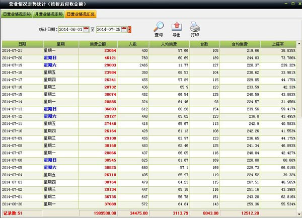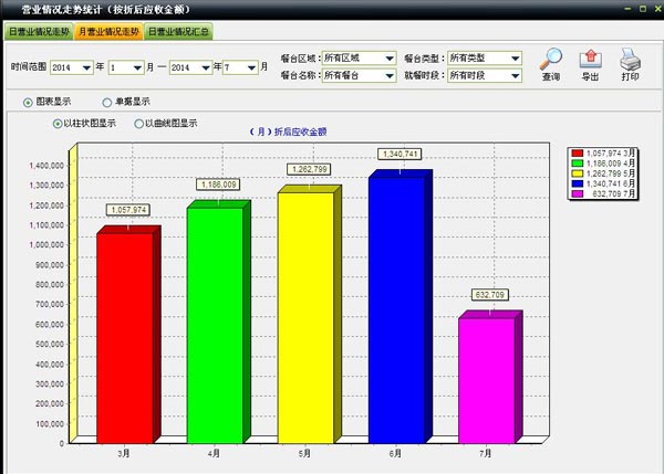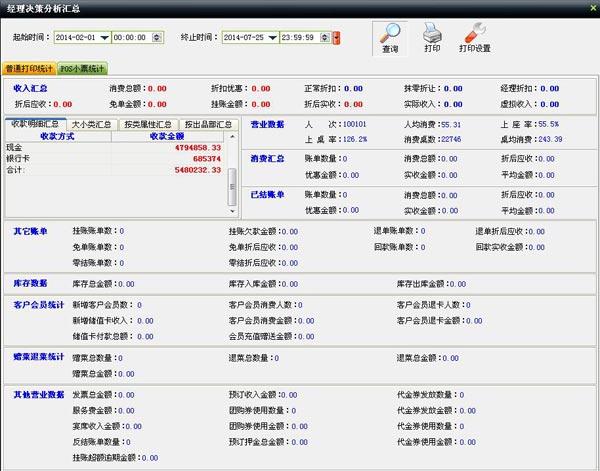 ◇支持账单明细查询:收银明细、账单查询、营业走势、管账单回款查询、未结信息查询、业务查询、退赠转菜情况查询