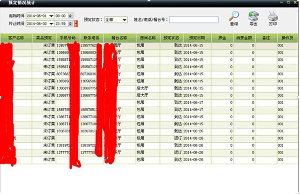 ◇支持预定信息统计:预定情况、来电记录、回访记录、预定菜品统计、满意度调查